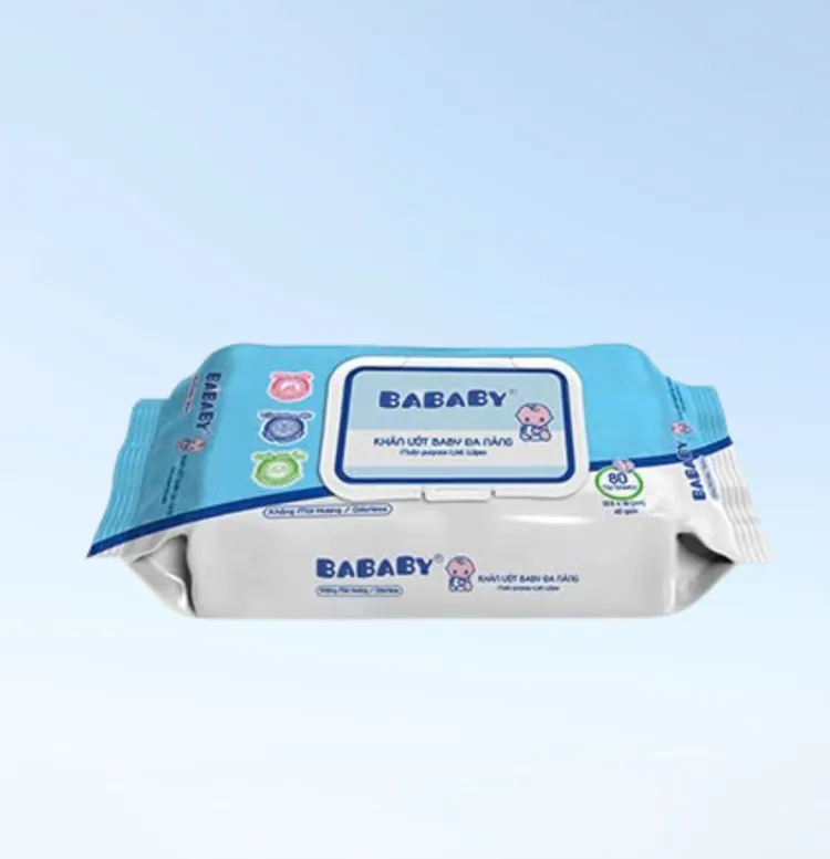 Khăn ướt Bababy đa năng (80 tờ) là sản phẩm để vệ sinh cho trẻ nhỏ, thường được làm từ vải không dệt, thấm dung dịch an toàn, dịu nhẹ cho da em bé.