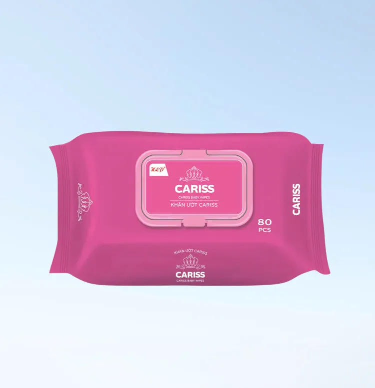 Khăn ướt Cariss là sản phẩm để vệ sinh cho trẻ nhỏ, thường được làm từ vải không dệt, thấm dung dịch an toàn, dịu nhẹ cho da em bé.