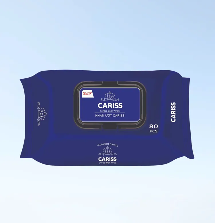 Khăn ướt Cariss là sản phẩm để vệ sinh cho trẻ nhỏ, thường được làm từ vải không dệt, thấm dung dịch an toàn, dịu nhẹ cho da em bé.
